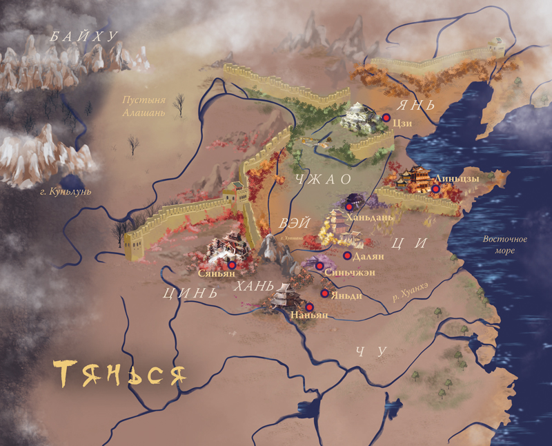 К западу от Центральных равнин[2] простирается земля Байху. Чтобы попасть туда, нужно преодолеть заснеженные перевалы и пересечь огненную реку. Белый страж, вестник осени, целую вечность стережет врата, что высотой достигают небес. Но если путник преодолеет все трудности, то окажется в удивительном краю. Там, несмотря на холод, вне зависимости от сезона, цветут и плодоносят персиковые деревья. Если съесть персик, который вырос на землях Байху, можно излечиться от любого недуга и прожить сотни лет.