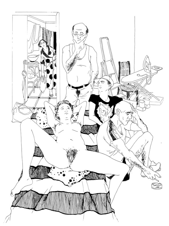 – Да ты зайди, чо уж, – бормочет Пётр. Павел плачет. Все понимают, что это неспроста. Жена Павла мнётся и отнекивается. Но слышит эротические стоны жены Петра и заходит, влекомая любопытством. Жена Петра лежит на тахте.