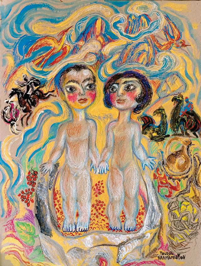 Лицо роженицы Айны Мелек было усталым и счастливым. Около нее стояли треножник и медный таз, полный воды. По древнему поверью, с ними женщина рожает легко. Фатьма Брюхатая покрыла таз чистой тряпицей. В одеяло Айны Мелек, в ее одежду она воткнула иголки – защита от сглаза. Потом Фатьма положила в банку луковицу, отнесла ее к дверям. Под подушкой Айны Мелек спрятала кусок хлеба и мяса.
