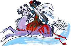 Среди привезенных купцами даров был и Серый жеребец. Он стоял вместе с верблюдами у входа в пещеру. Молодой купец выбрал удачную минуту, вскочил на спину Серого жеребца и ускакал.