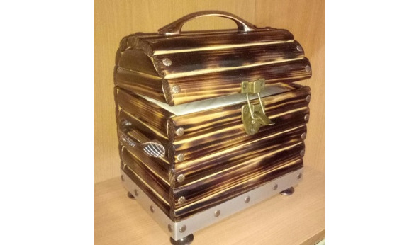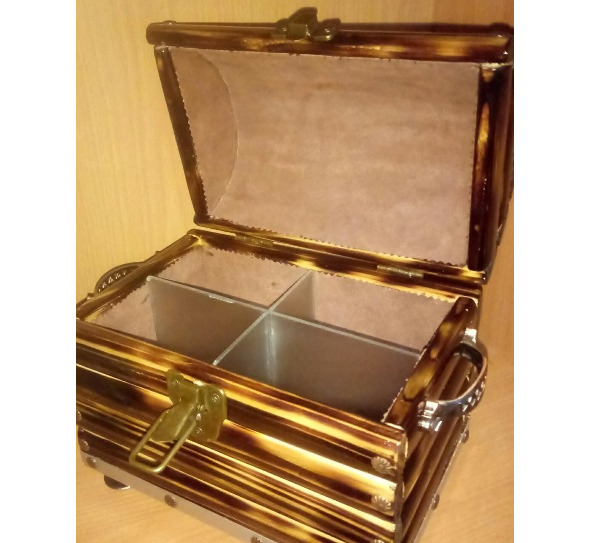 – Сундучок-рундучок, разделённый на четыре части, сверху площадка с отверстиями, надписи ячеек.