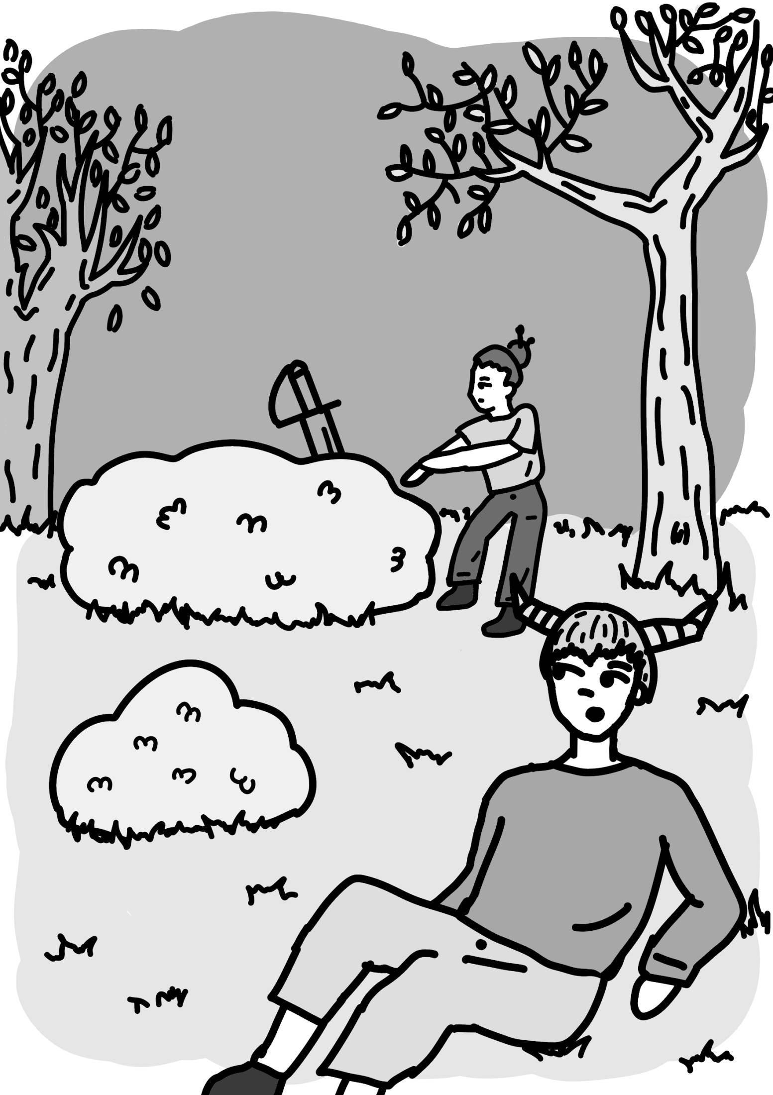 Люди в лесу были тут и там.
