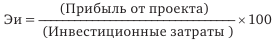 Обычно считают, что доходность и риск сопутствуют любым инвестиционным решениям. Зависимость между этими параметрами прямо пропорциональная. Чем больше требуемая доходность проекта, тем выше связанный с ним инвестиционный риск. Под влиянием оценки риска формируют требования к уровню прибыльности проекта. Затем требуемый (нормативный) уровень доходности сравнивают с фактически ожидаемой его величиной. Если последний параметр окажется выше, то проект принимают. При обратном соотношении его отвергают, т. к. не принесет инвестору желаемой отдачи (эффекта в форме прибыли). Параметр, позволяющий сделать непосредственное сравнение требуемой и нормативной доходности, называют критерием оценки эффективности инвестиционного решения. Подобным критерием является эффективность инвестиций (Эи), определяемая по формуле:
