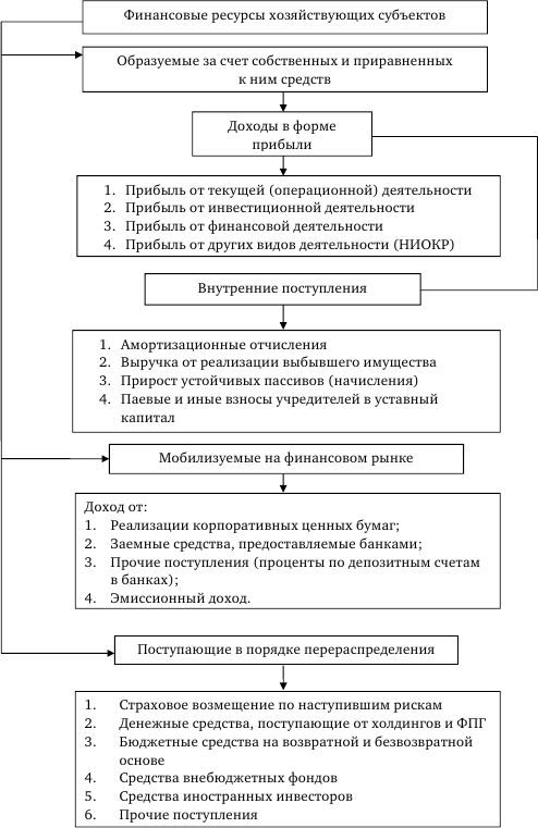 Авторы полагают, что финансовые ресурсы выражают реальный денежный оборот предприятий (приток и отток денежных средств). Источником их формирования являются все денежные доходы и поступления средств как внутренние, так и внешние. Потенциально финансовые ресурсы формируют на стадии производства, когда создается новая стоимость и осуществляется перенос старой стоимости на готовый продукт, но именно потенциально, поскольку работники предприятий производят не финансовые ресурсы, а продукты труда в натуральной форме. Последние продают на рынке, где они получают денежную оценку.