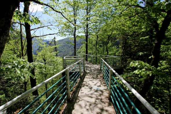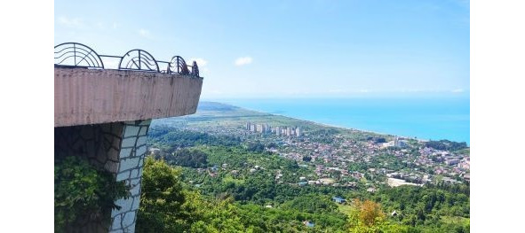 В 1904 году принцем Ольденбургским было построено Альпийское шоссе к вершине Мамзышхи. Через 6 км на этой дороге на высоте 300 м была устроена смотровая площадка с видом на Гагру. Конечно, проще туда проехать, но для любителей прогулок на природе среди сосен и при чудесных видах, когда нет нужды спешить, пройти 12 км суммарно не представляет особого труда. В панораме открывается чудесный вид на побережье от Гудауты слева до Адлера справа. Гагра как на ладони. Смотришь сверху, будто изучаешь иллюстрированную карту.