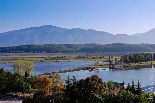 Подъехать к нему просто, озеро расположено рядом с шоссе на Пицунду, не доезжая до центра города 3 км.