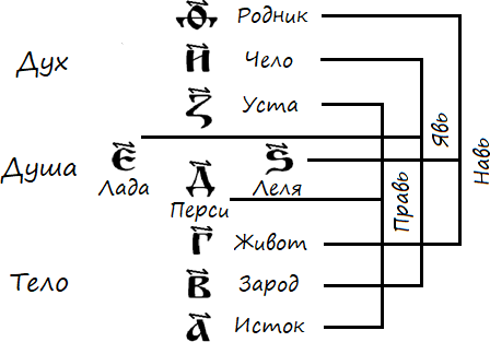 Не менее интересно выглядит схема устройства славянской девятичакровой системы, в которой также, как и на Мировом древе, существует три уровня. Это уровни Тела, Души и Духа.