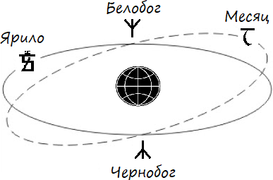 По своему действию Чернобог подобен Орею. Именно Чернобог подобен Орею, а не Орей Чернобогу. Это справедливо, потому что Чернобог, в отличие от Орея, не имеет своего тела – это эфемерная точка пересечения орбит Солнца и Луны.