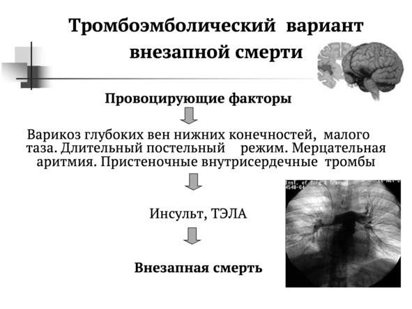 Принято различать понятия «внезапная сердечная смерть» и «внезапная смерть». Если в первом случае имеются кардиальные причины смерти, то во втором – могут быть другие причины: массивная тромбоэмболия легочной артерии, разрыв аневризмы сосудов головного мозга, анафилактический шок и т. д.