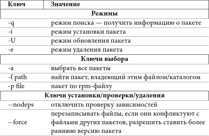 Когда приходится работать с конкретным пакетом или rpm-файлом, то на помощь приходит команда rpm. Её важные ключи: