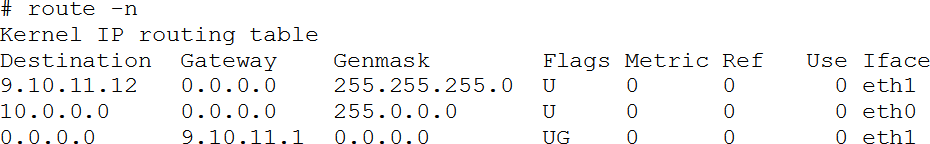 Отсюда, в частности, следует, что маска 0.0.0.0 задаёт маршрут, который сработает всегда, так как результат её применения всегда будет 0.0.0.0. Такой маршрут часто называют default (по умолчанию). В нашем примере сеть 9.10.11.* доступна через eth1, сеть 10.*.*.* – через интерфейс eth0 (это внутренняя сеть), а все остальные пакеты направляются на роутер 9.10.11.1, который доступен через интерфейс eth1.