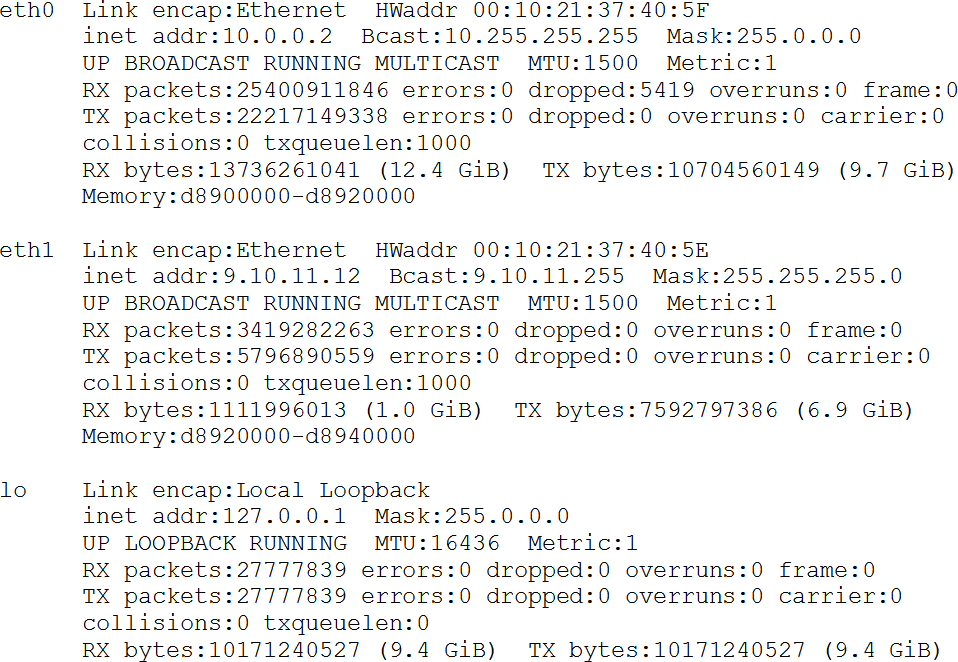 Тут мы видим MAC-адреса карт (HWaddr), IP-адреса интерфейсов (inet addr), широковещательный адрес сети и маску сети (Bcast, Mask), а также статистику: