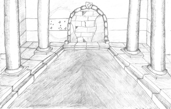 К полудню заваленный проход, ведущий в Главный зал храма, удалось расчистить. Первым в зал спустился «Суслик» (так археологи прозвали робота-разведчика). На экранах виднелся замусоренный пол, стены обширного помещения терялись в темноте. Иногда в поле зрения попадали прямые «варварские колонны», стоявшие на ступенчатом периметре зала.