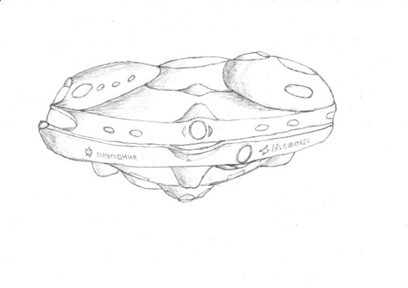 Корабль стоял на четырёх телескопических опорах, приподнявшись ещё метра на полтора над землёй. Через открытый грузовой люк деловитые роботы грузили контейнеры. На борту, рядом с синей «звездой странствий» (эмблемой экспедиционных кораблей) шла ярко-красная надпись на русском языке и космокоде: «Плутония, Земля – Солнечная система, Академия Наук».