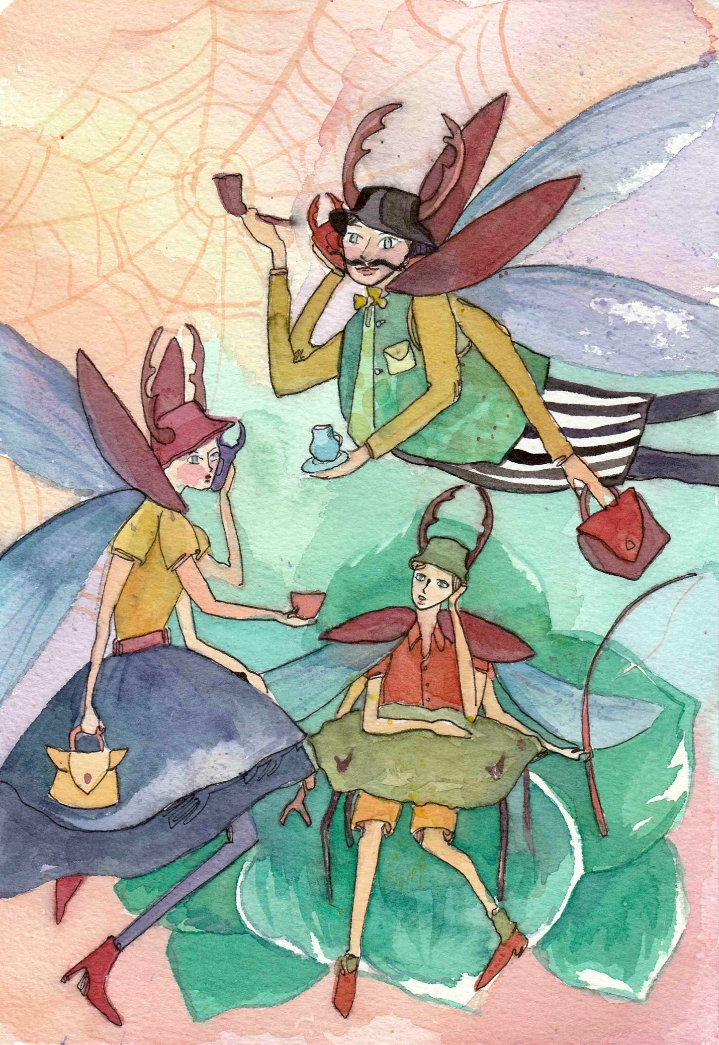 На другой стороне реки Воря жил знаменитый на весь свет кутюрье. Мама-жучиха ЖИНЬ-ЖИНЬ знала щелку в его мастерской и часто залетала узнать о последних новостях в мире моды. По четвергам она собирала подружек в ресторане «Седьмое небо», на цветках махрового жасмина у ступенек террасы. За столиком, поедая маленькие фруктовые пирожные и запивая их кофе с нектаром, подружки обсуждали последние события своей жизни. Это был звёздный час ЖИНЬ-ЖИНЬ. Она рассказывала об увиденных новых моделях, о том, какие в этом сезоне носят платья на вечерний вылет в гости, какие – на бал, а какие – на деловую встречу. Среди подружек ЖИНЬ-ЖИНЬ считалась самой модной из модниц. Как только входили в моду коротенькие платьица, у неё на следующий день были самые короткие и откровенные, а если блестящие туфельки – у нее были самые сияющие. Но все было не так просто. Как-то по секрету мама-жучиха ЖИНЬ-ЖИНЬ проболталась своему мужу ЖУН-ЖУНУ.