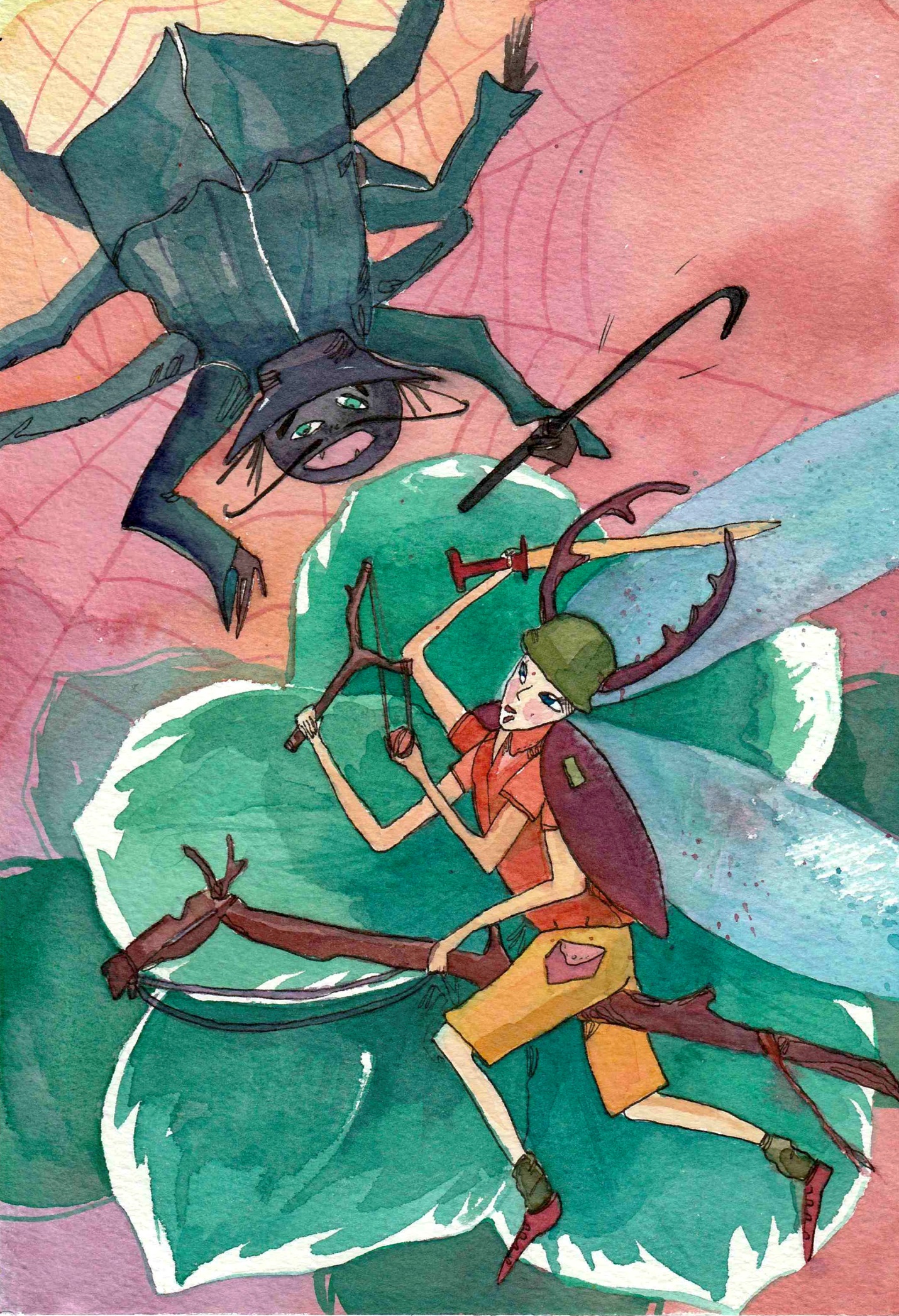 Папа жук Жун-Жун тоже был не промах. Он был единственный жук в округе, умеющий читать. Этому его научила девочка Марьяша, у которой он собирал со стола крошки печенья. Залетев на террасу дачи в начале лета, ЖУН-ЖУН увидел Марьяшу, сидевшую с книжкой. Он стал жужжать вокруг неё и, сев на краешек стола, спросил: