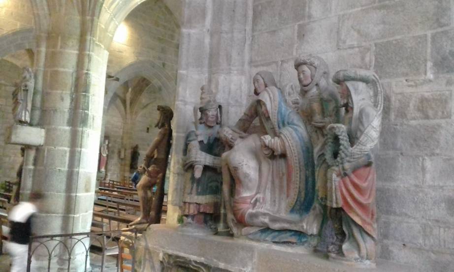 Церковь св. Ронана в Локронане – красивый храм в стиле пламенеющей готики, построенный благодаря пожертвованиям герцогов Бретани. Его возвели в 1424 – 1480 гг. На башне высотой 30 метров (нынешняя высота) раньше был шпиль, достигавший высоты 38 метров, но в него трижды ударяла молния: в 1640, 1722 и 1808 гг. Так что теперь шпиля нет.