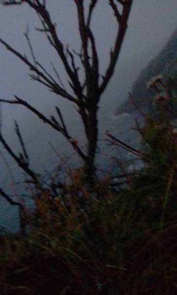 Вокруг по-прежнему плавали струи тумана, которые гонял вокруг скалы порывистый ветер с моря. Закончив зарядку своих внутренних аккумуляторов, я перенес рюкзак в заросли папоротника. Здесь я могу спокойно его оставить – он не привлечёт ничьего внимания, и я могу пойти на мыс без груза за плечами. Я взял только немного воды.