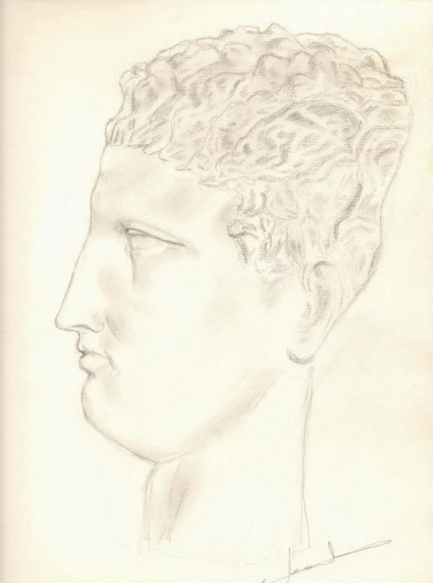 Решил учиться сам. Для этой цели я купил в подвалах того института гипсовую голову древнего грека у голодных студентов, всего за 10 рублей, и притащил её в Архангельск. Голову повесил на шуруп, ввинченный в стенку и начал рисовать. Рисовать гипсовую голову –сложно. Сложнее, чем с натуры чью-то голову.