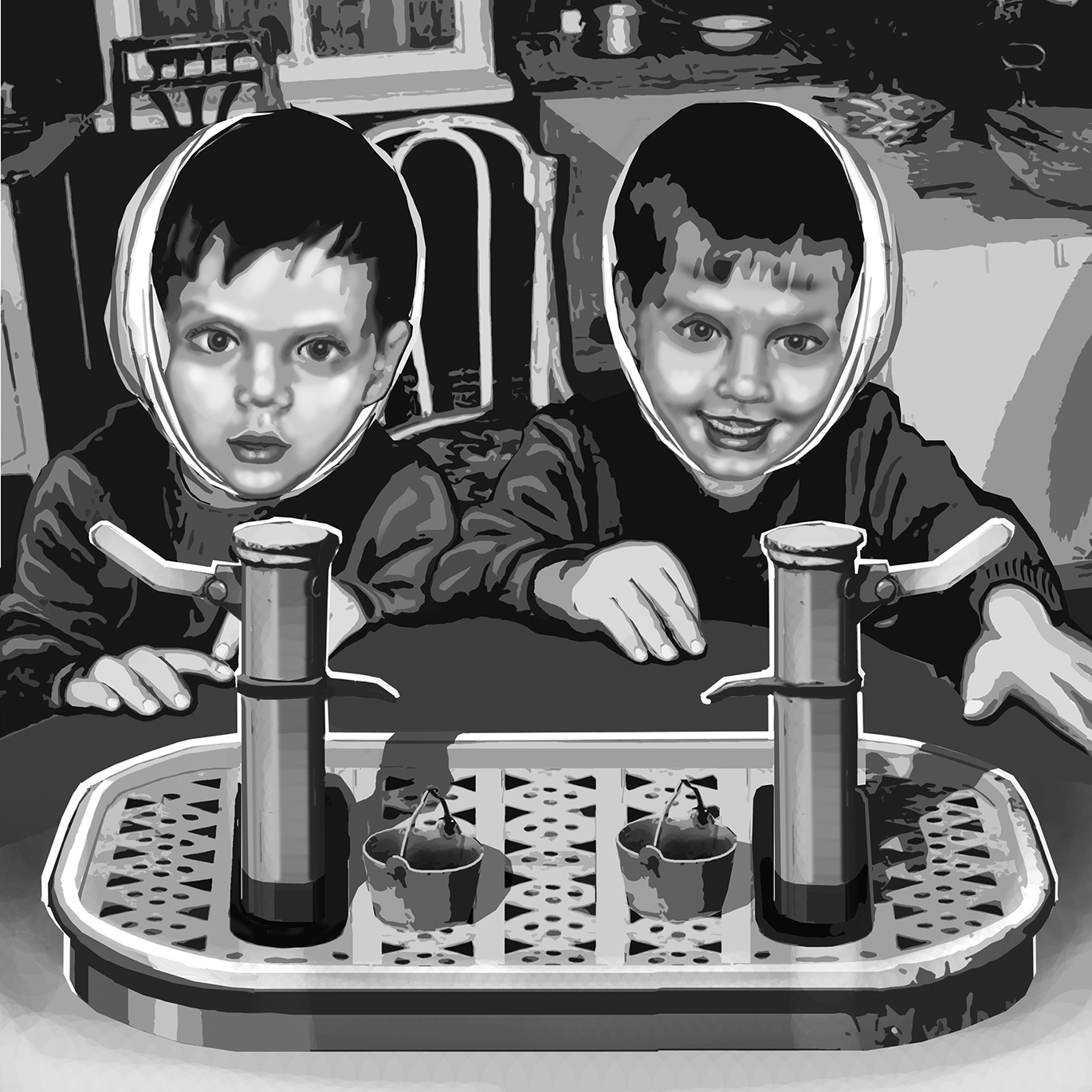 Мы оба болеем, а поэтому вместо законного пребывания в детском саду целую неделю торчим дома, подтачивая нервишки мамы и папы своими капризами и выходками. Мы страдаем не только от ангины. У нас ещё и уши болят: у меня правое, а у Сереги – левое. Со стороны мы, пожалуй, выглядим забавно. Два одинаковых круглолицых малыша в одинаковых штанишках и рубашечках. Нас можно различить лишь по повязкам на головах. У одного ватный комок закреплен на правом ухе, у другого – на левом.