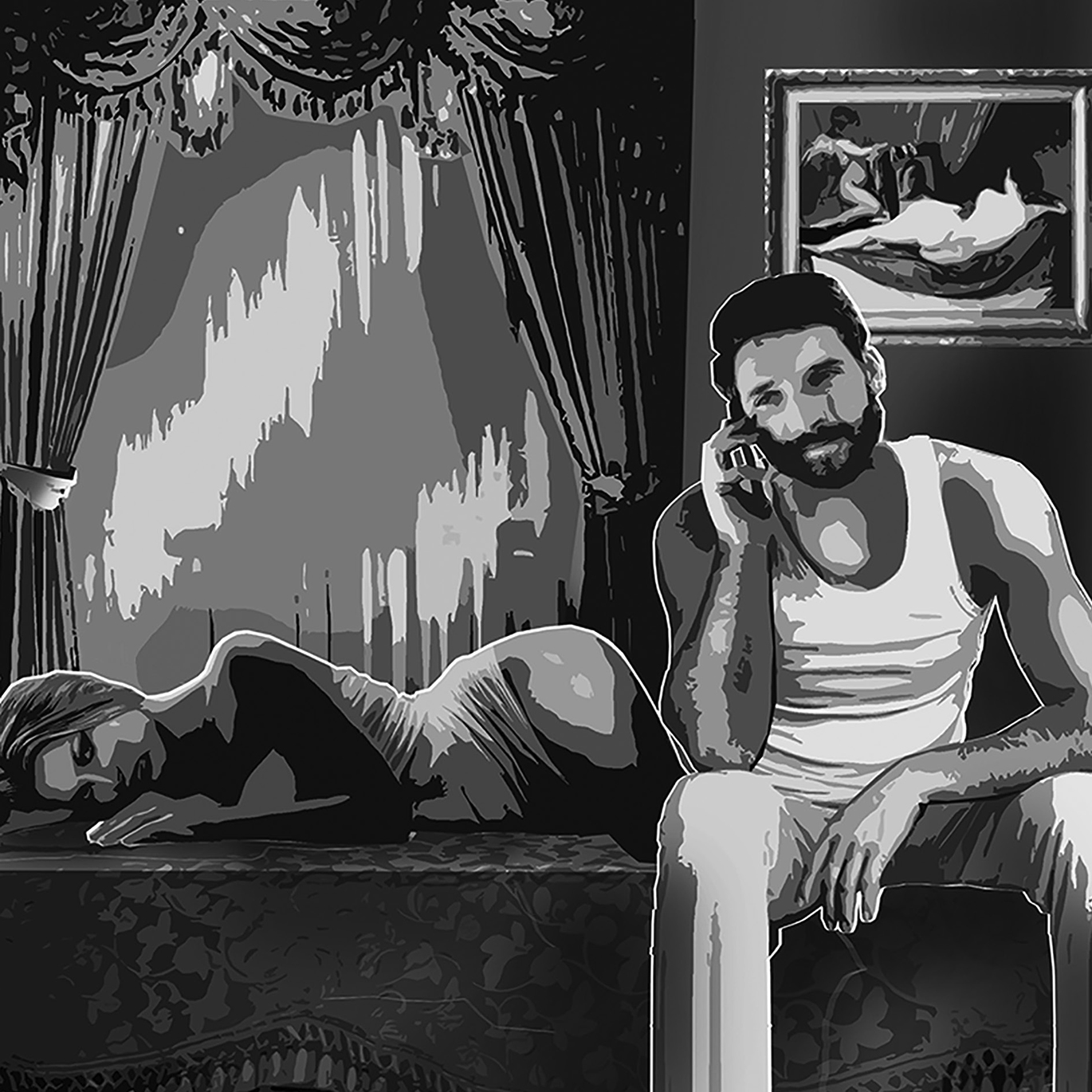 (Трясет натурщицу. Мелькает мысль… Она в коме! Надо вызывать «скорую»!)