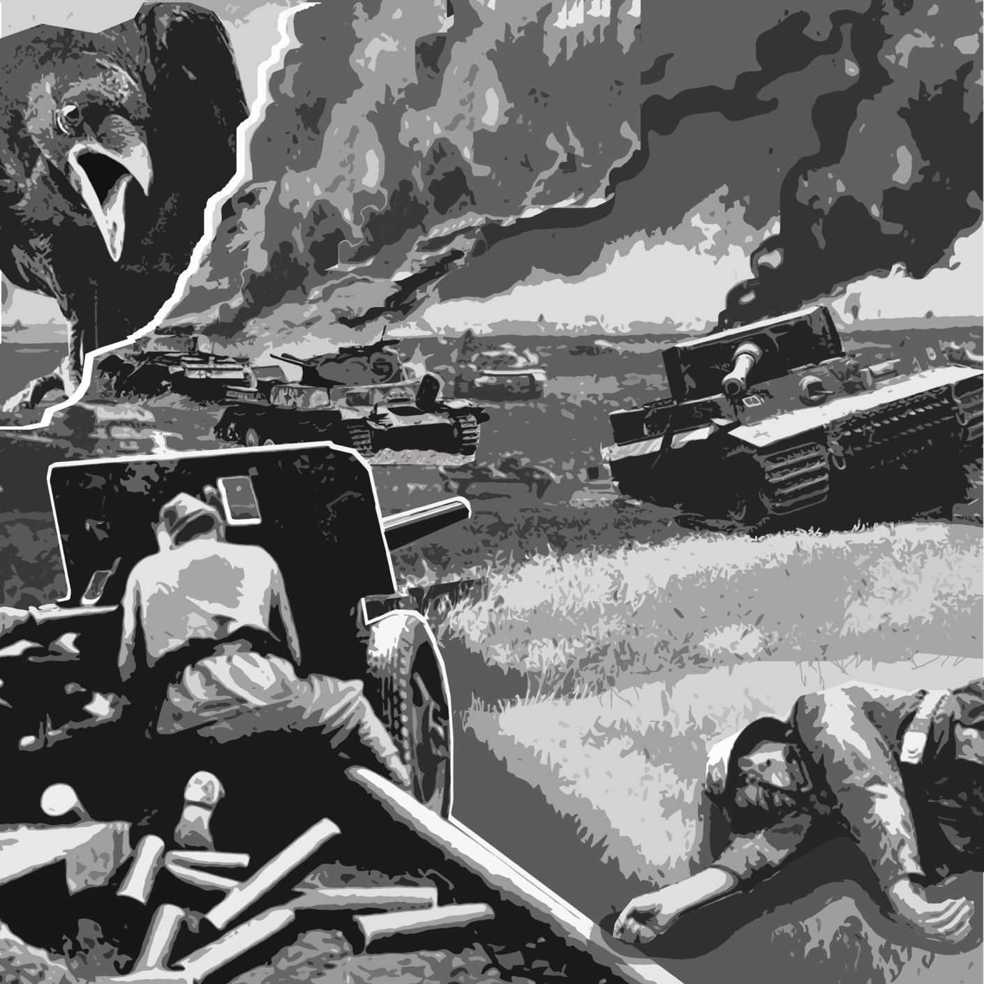 – Бронебойным, заряжай! Что-то сиплое и нечленораздельное вырвалось из его уст, губы и язык не слушались. Просящий жест руки красноречиво дублировал смысл его сипенья. Мужички наперегонки кинулись к ящикам со снарядами, которые были покрыты телами мёртвых солдат. Пока писатель оттащил труп подносчика со снарядного ящика, Саныч, с неожиданной для его возраста лёгкостью, схватил снаряд и, пригнувшись, подбежал к командиру. Лейтенант шатаясь, с залитым кровью лицом открыл затвор и вложил свежий бронебойный. Грянул выстрел. Танк, на полной скорости приближавшийся к тому месту, где засели артиллеристы, вздрогнул и, проехав по инерции еще немного, остановился, не доехав до цели каких-нибудь пару сотен метров. Сероватый дымок показавшийся из-под башни очень быстро перешёл в чёрную дымовую завесу.