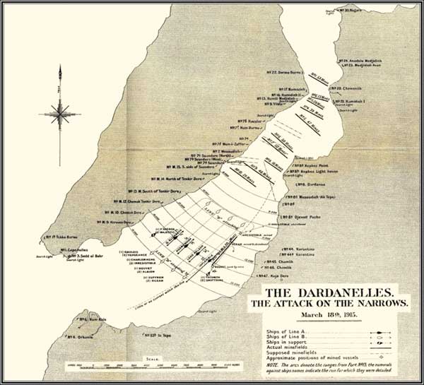 Исторически сложилось, что укрепления Босфора готовились отражать атаку с севера, а укрепления Дарданелл – с юга. Так, в 1915 году Англия и Франция попытались повторить опыт Крымской войны, но почти беззубая Турция при поддержке ограниченного немецкого контингента сумела отбиться от в разы более мощного флота. Стоит только представить соотношение сил… С одной стороны 3 линкора, с другой – 1, у одних 33 броненосца, у других – опять 1. Зато вот крейсеров у турок было целых 3… Против 23, приведенных союзниками. И это не считая подводных лодок, авиации и дредноута «Королева Елизавета» с его 15-дюймовым главным калибром, чьей разрушительной мощи хватило даже для следующей мировой войны.