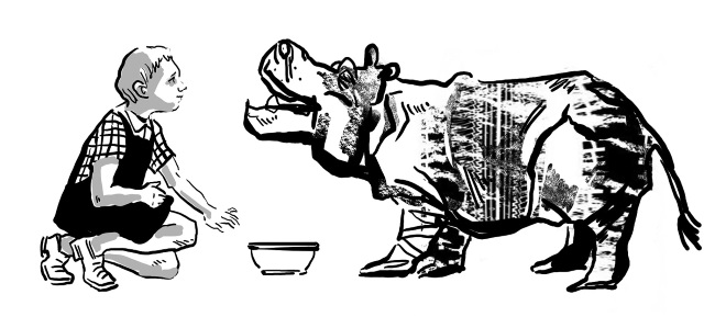 Любой читатель очень быстро поймет, что того же «Моего бегемота» можно увеличить в два-три раза. Вспомним, например, тот эпизод, когда семья мальчика собиралась в деревню. Собралась. Мальчик добился того, чтобы в деревню взяли Гошку. Взяли. Далее текст: