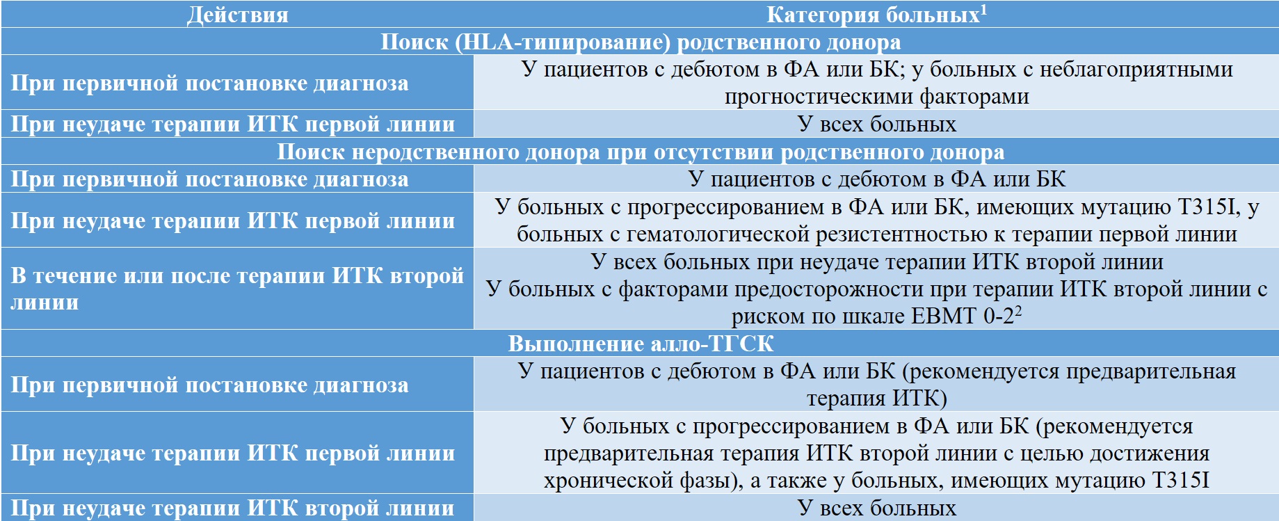 1 Рекомендации применимы к больным, которые по возрасту и функциональному состоянию являются кандидатами для проведения алло-ТКМ.