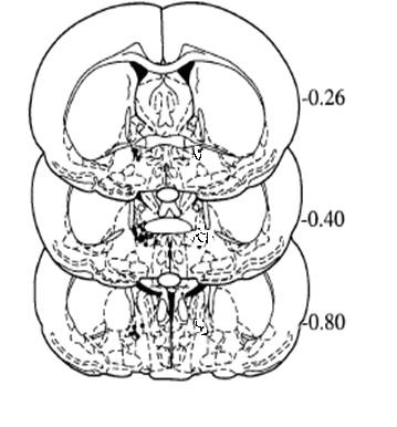 Канюли фиксировали на черепе животного самотвердеющей пластмассой и после операции закрывали специальным колпачком, который временно снимали для введения веществ в структуру мозга.