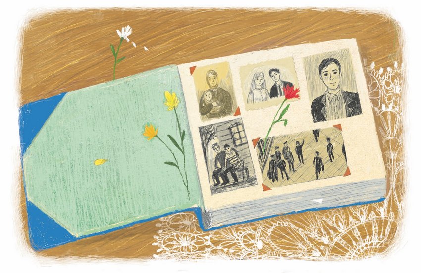 Дома бабушка достала из комода старый фотоальбом с синей бархатной обложкой и положила на стол перед Машей.