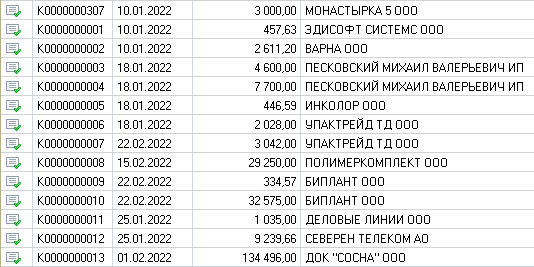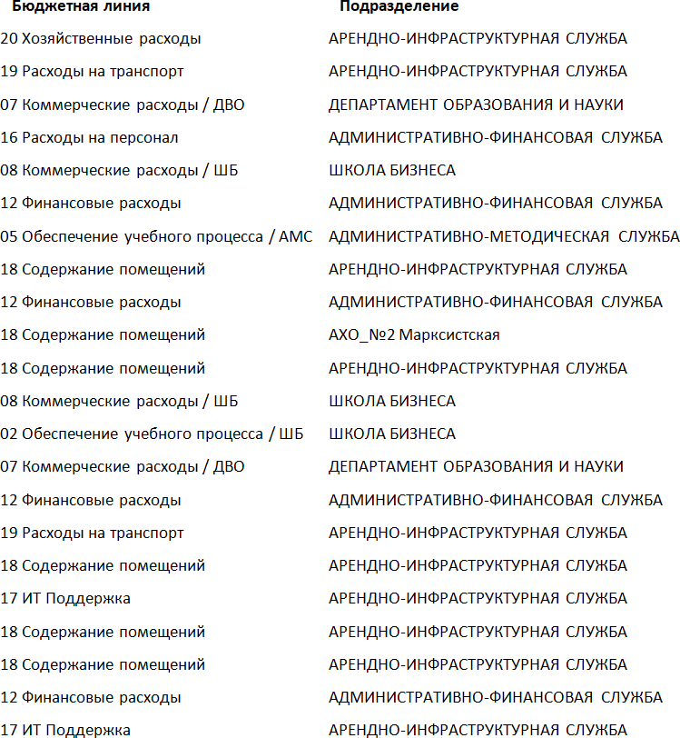 Вот пример, список сводных платежных распоряжений института МИРБИС. В одно Сводное платёжное распоряжение группируются заявки по одной бюджетной линии. Бюджетная линия – это группа статей бюджета.