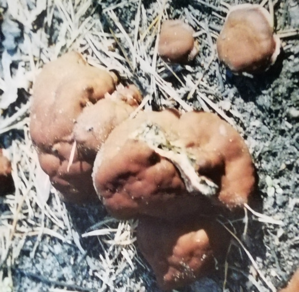 Вот в этом-то горелом бору на следующий год массово выросли сморчки, причем не в мае, а во второй декаде июля! Одновременно росли и обыкновенные и конические. Их не надо было искать, они были повсюду, и одиночки, и семейки до полутра десятков. Причем конические были отнюдь не миниатюрными, достигая 20 см в высоту и 6 см в диаметре. Кроме сморчков иногда попадалась ризина волнистая, несъедобный гриб, паразитирующий на корнях ослабленных деревьев, но ни одного другого гриба не встретилось.