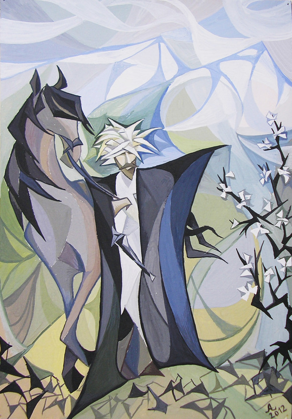 Цепями обвила крапива, движения стесняя,Вновь рвет, словно клык искривленный, плоть шип, уж иссохший,И, насквозь пронзая за год огрубевшую кожу,Гной пьют стебли плюща, в ослабшее сердце вгрызаясь.Слезой кислота по щекам моим мерно стекала,Под ногти вонзившись, в крови обагрилися иглы,Но ради цветов, что ты, триффид, лишь мне подарила,Готов как безумный лобзать ядовитое жало.Сливался с тобой и, обвитый рукою-лианой,Не сдерживал я сладострастия тихого стона.Из венчика вновь напоенный дурманной слюною,На грудь твою, словно на ветви, главу опускаю.Пусть корни любви, разрастаясь, калечат, снедая,Пусть острые ногти, что шип, разрывают мне спину!..Как дикие джунгли тебя полюбил я, богиня,И снова дарю лишь тебе, столь прекрасной, признания.…Вдруг с темных ресниц ветр срывает прозрачную каплю,Вот взор суровеет, что море, накрытое мраком,И бледность, как пена, ланиты, твой стан покрывает,Дыхание, сбившись, сжигает могильным уж хладом.И огненный столб от земли до небес над волнами,Набухшую почву взрывая и в воздух подбросив,На миг озаривши вокруг все сиянием, простерсяИ снова исчез, потрясая скалу громыханием.…Вновь бьется и мечется вновь меж утесами море,Соленые брызги суденышку в гневе бросая,И топит в себе, уж корму пробивая валами,И палубу гложет, ревниво сокрыв под собою.Вновь пленный… Но моря седого объятия стальныеИ близость, дыхания хлад непокорной стихииМой нрав неспокойный, бунтарский навек укротили,Став робким, лишь здесь нахожусь в состоянии «штиля».За каплею капля, на сердце мое упадая,Любовь камень точит, пронзая жестокою болью.Зачем же свела, нереида, Судьба нас с тобою?Затем ли, чтоб яд этих дьявольских чувств принимал я?Когда же святой избавитель с Небес мне явится,Когда же покой мне подарит оскал иль улыбки?..Но Время все вертит, стеная, проклятые стрелки,И райски кукует, являясь из тени вдруг, птица.…Вот Смерть уж невинных из рук и цепей вынимала,Как, гвоздь забивая в сырую от слез крышку гроба,Ревниво склонилась принцесса, прощаясь со мною,И скорую встречу, но в жизни другой обещала.Могила