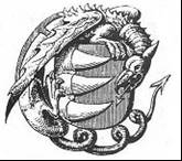 Над клыками – крылья грифона, а вокруг монограммы – дракон.