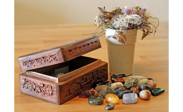 Алёнка оглянулась по сторонам, она очень любила бабушку и этот дом. Её взгляд привлекла большая деревянная шкатулка с красивой резьбой, она никогда её раньше не видела. Девочка с интересом приоткрыла крышку, её дыхание перехватило от восхищения. В шкатулке было много красивых украшений из натуральных камней.