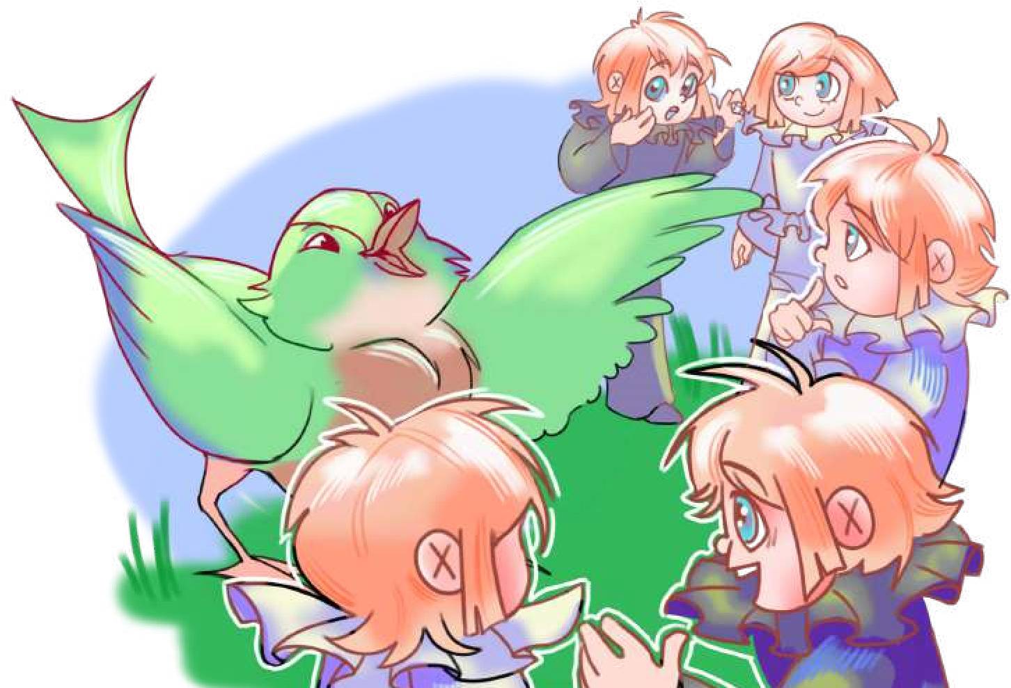 В момент отчаяния на помощь пришёл Говорун. Он пролетал мимо и приземлился на поляне, чтобы передохнуть. Как известно, птицы этого вида отличаются умом и сообразительностью. Разговорившись с удручённым народом, Говорун понял всю глубину их печали. Он поведал о том, что далеко-далеко, за глубокими океанами и высокими горами, существует страна, где живёт один волшебник. Он может изготовить зелье от любых болезней. Но дорога в эту страну очень опасная. До- 15 браться туда сможет только тот, кто обладает храбрым сердцем.