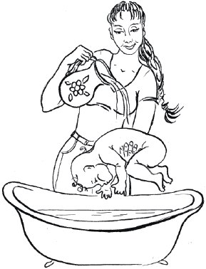 Не забывайте про Ваш дневной сон, или просто отдых, ежедневно в одно и то же время, и обязательное купание малыша. Мы старались купать детей с мужем вместе – это доставляло нам невероятное удовольствие. Процедура купания была превращена нами в некий ритуал, который имел свою последовательность и даже свое торжественное завершение. Сначала малыш лежал на животике, а мы, тем временем, готовили воду комфортной температуры. Обычно это 36,5° С, но есть еще довольно надежный способ проверки – локтем. Опустив локоть в воду, Вы определите, насколько приятными будут ощущения малыша. Часть воды из ванны набирается в кувшин, который ставится отдельно (для ополаскивания). Если Вы приобрели подставку для купания, Вам будет очень удобно. Укладывайте ребенка на подставку и, не переставая ласково с ним разговаривать, гладьте его в воде, поливайте водичкой грудку. Ни в коем случае не оставляйте малыша одного на подставке! Первое время не используйте мыло и мочалку. В конце купания, достав ребенка из воды, переверните его спинкой вверх и быстро ополосните водой из кувшина. Вода в кувшине уже несколько остыла, и это обливание является первой закаливающей процедурой, которую Вы ежедневно будете применять. Это станет первым шагом в укреплении здоровья Вашего малыша.
