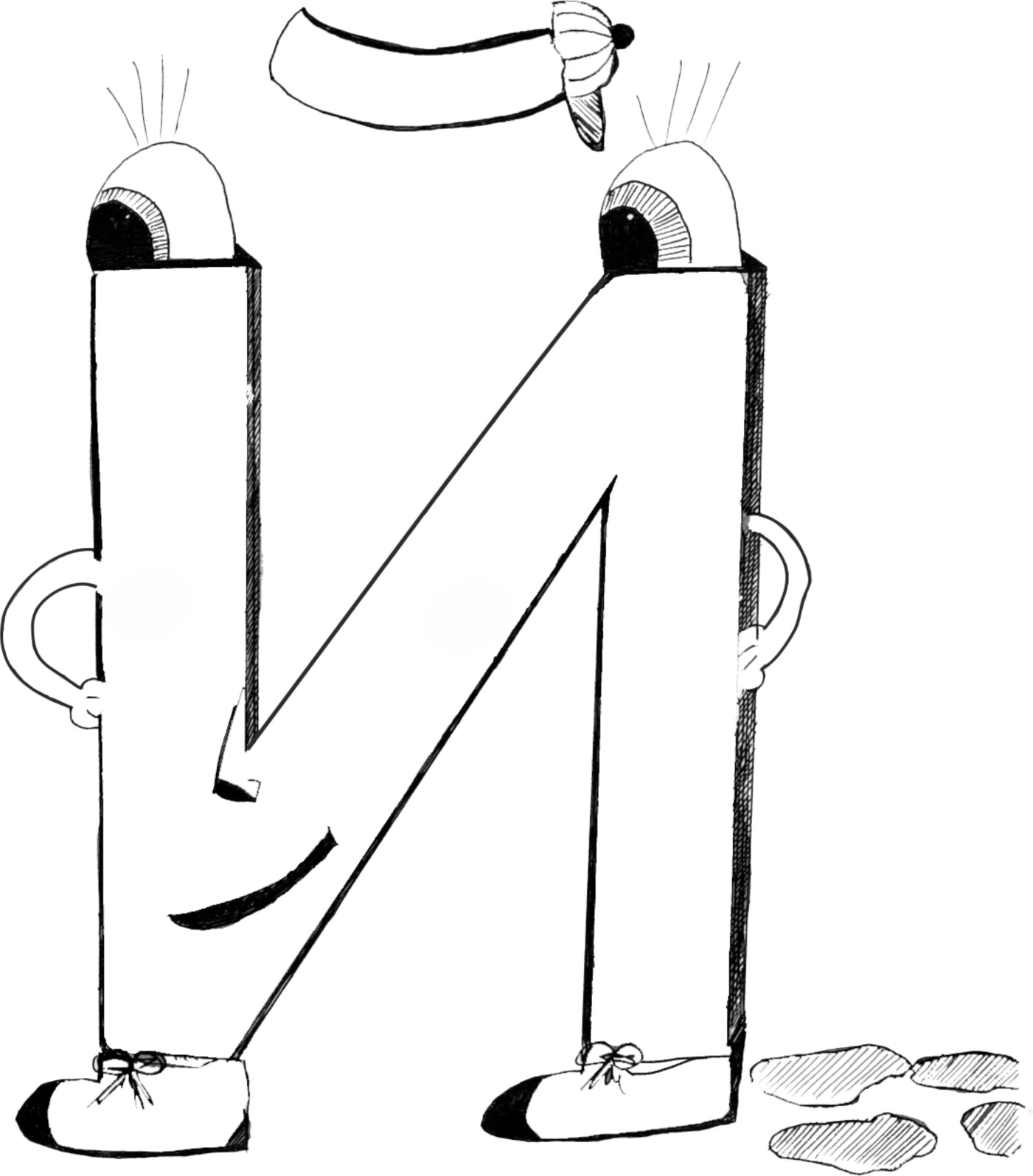 Жила–была в Азбуке буква Н. Он выглядел всегда нарядным: наглаженный, надушенный, напомаженный, но смотрел надменно и вел себя иногда нахально, а иногда назойливо. Был он голубого цвета, гладкий и скользкий, как мыло, но очень нравился сам себе и не мог на себя в зеркало налюбоваться.