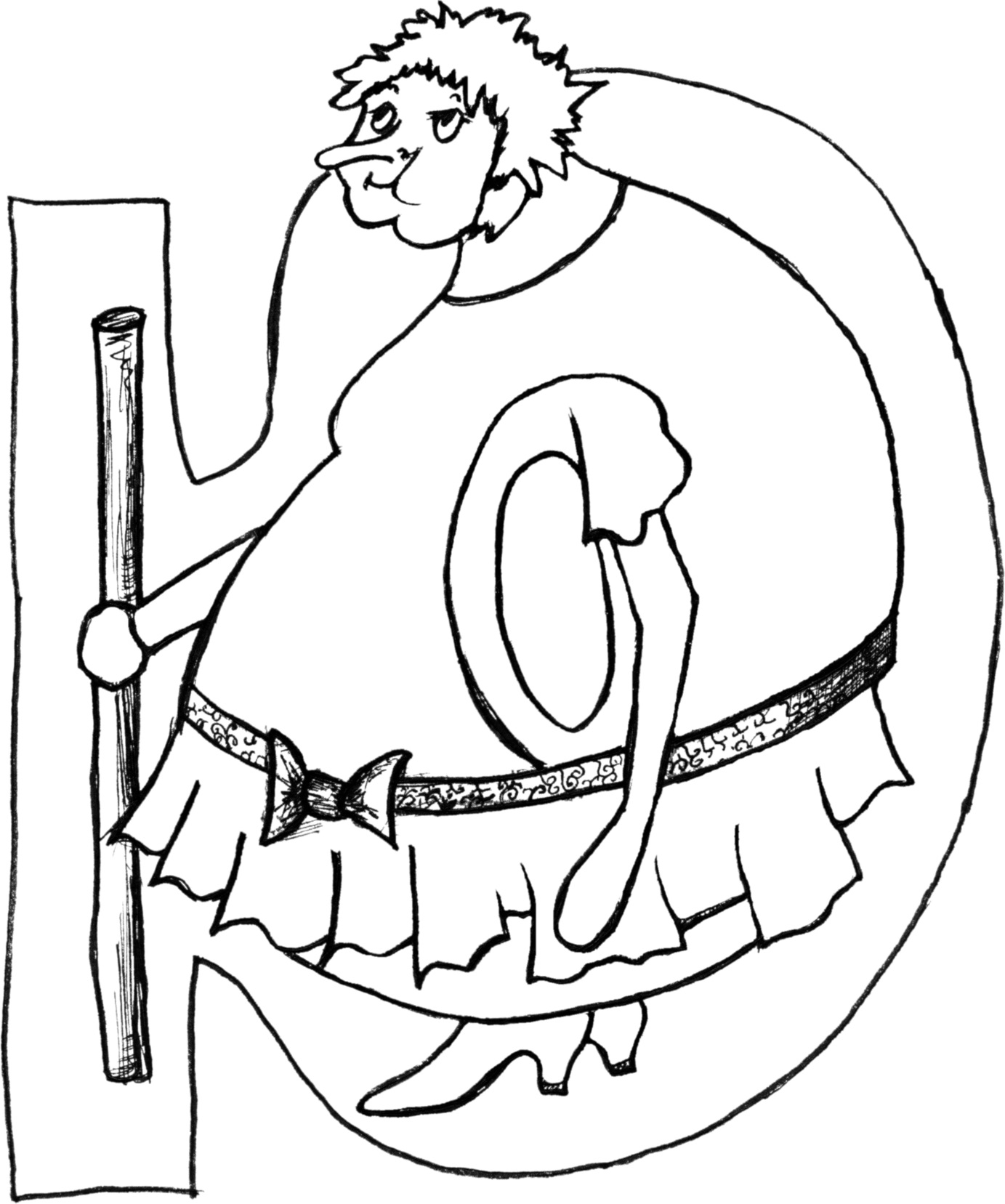 Внешне буква Ю выглядела некрасиво: она была толстенькая, как буква О, но не такая веселая и беззаботная, как она, и ходила медленно, опираясь на палочку. Говорят, что в юности она перенесла тяжелую болезнь и теперь с трудом могла ходить. Остальные буквы в Азбуке считали ее юродивой, то есть больной или немного не в себе, и относились к ней так, как люди относятся к инвалидам: в душе каждый считал себя лучше, чем эта несчастная буква, но внешне старался проявить заботу. И в тоже время дружить с ней никто не хотел, и в словах она появлялась очень редко.