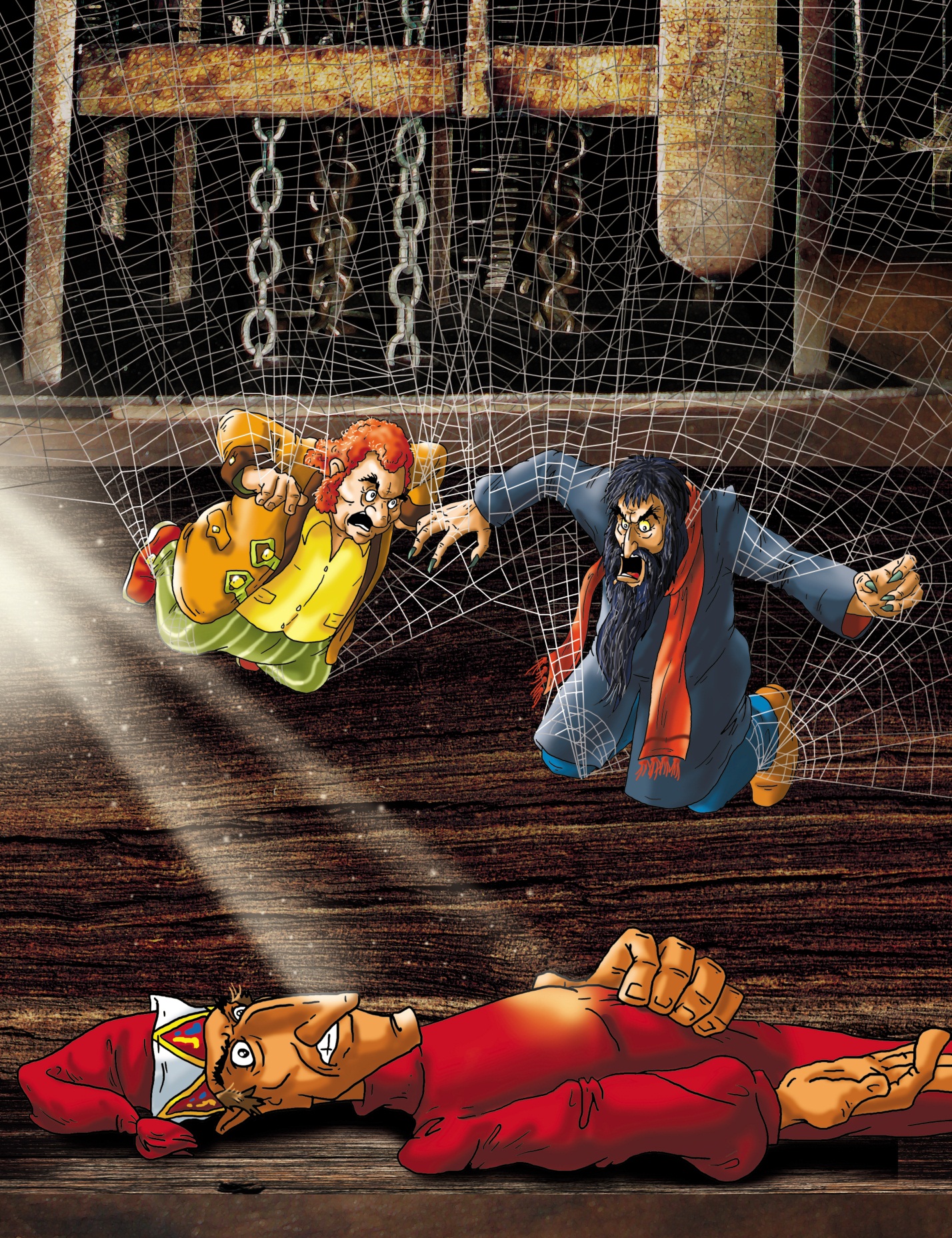 Только жизнь нынче у них была невесёлая. За то, что желали зла людям, были они строго наказаны наиглавнейшим квартальным хранителем. Да-да, не удивляйтесь, мои дорогие, даже у злых волшебников наличествует вышестоящее начальство. Долговязый Кочебор Колядыч и толстый хитрец Свирка были в воспитательных целях уменьшены и напоминали теперь двух тараканов: один тощий с длинными усами, а второй пузатый и ярко-рыжий. Висели злодеи внутри волшебных часов, скованные прочной паутиной, а покачивание в пыльных путах стало единственным их развлечением.