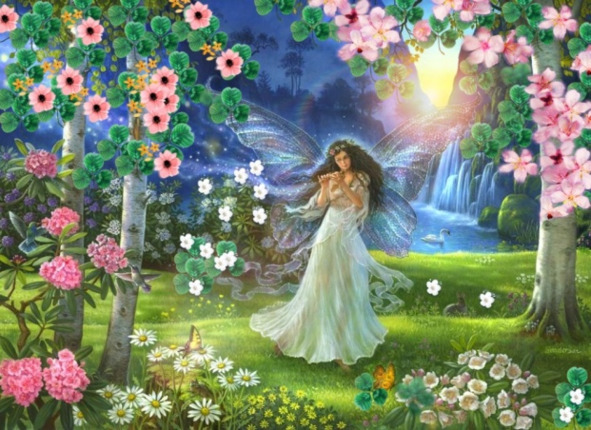 И тут начали из под земли ключи чистые пробиваться, фонтанчиками бить, и разливаться ручьями между засохшими деревьями, вливаться в замутненные русла рек. Зажурчало все вокруг. Ручейки чистых ключей, весело разбегались по всему саду, звеня переливами колокольчиков. Земля наполнялась влагой и в ней начала пробиваться нежная зелень молодой травы. Деревья зашевелились, закряхтели, зачавкали корнями, на глазах стали преображаться, превращаться в сильные мощные деревья. Набухали почки и пробивались листочки. Реки очищались от зеленой жижи и наполнялись чистой ключевой водой. Откуда-то прилетели птицы и, перепрыгивая с ветки на ветку, щебетали, весело переговариваясь. Ароматные цветы распускались на всех деревьях, на которые начали слетаться дикие пчелы. На многих деревьях стали созревать плоды, сочные, спелые.