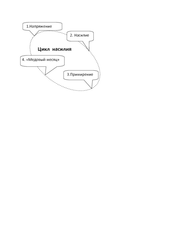 Цикл домашнего насилия по этой концепции включает 4 стадии.