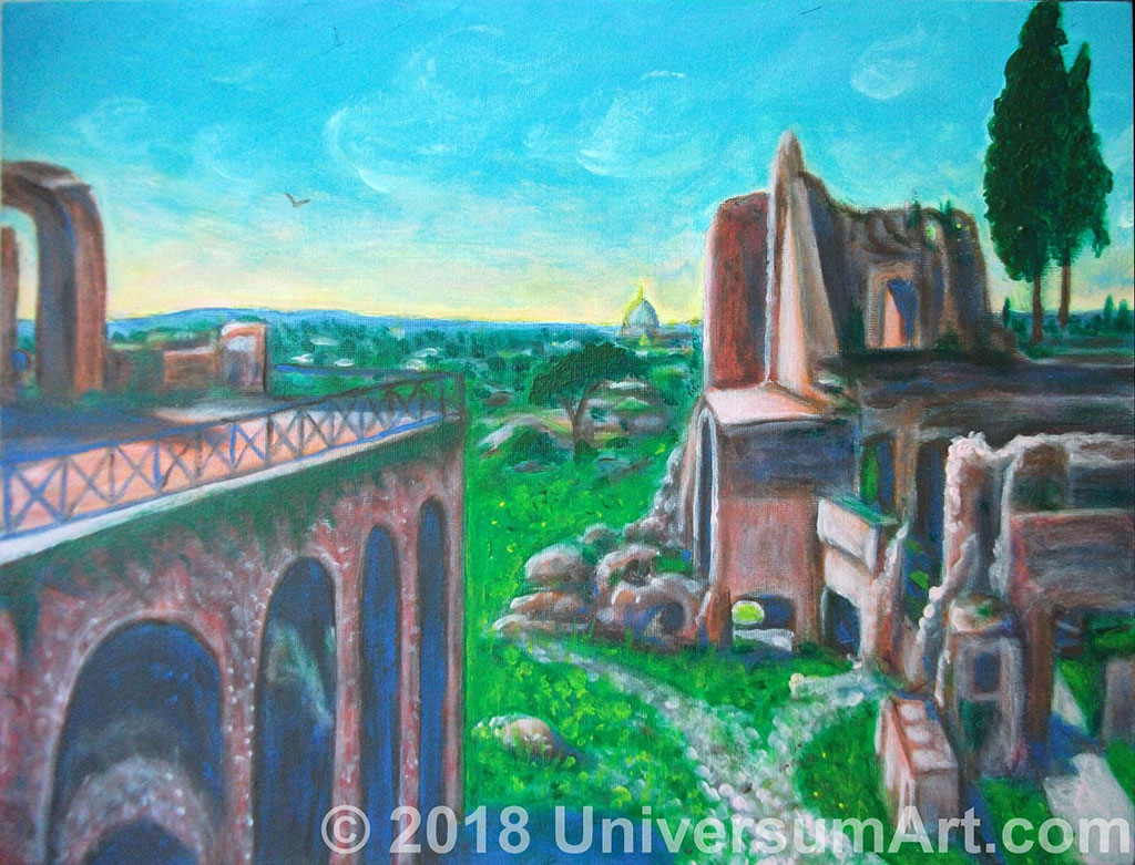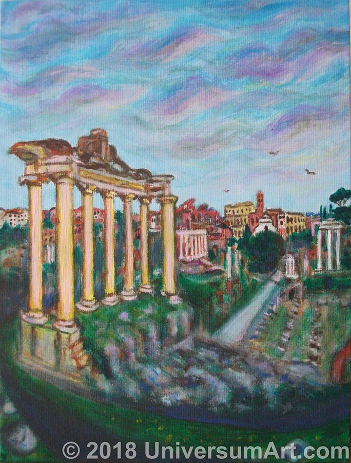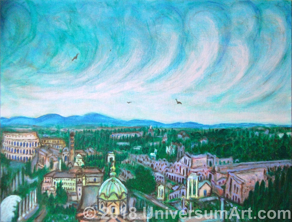 Распластаться над Палатином и полететь,Принять форму всех форумов,Колизеем колесоваться:Чтоб в скитаний паутины – свой ствол продеть,Хору внять – дебрей прорванных,Сквозь лазейки волн – в ветр сбываться!..Лабиринтами блуждая древних руин, —То травою, то деревом —Меж камней прорезаться:Зябкий ритм освобождая гневных глубин, —Средь правд скользко-растерянных —В брешах дней – досказаться!То величье – не императоров, а богов:Здесь пульсирует, слышится —Глас бескрайний – звёзд хором встречным!Стон Космический – с неразгаданных берегов:Песнь Надмирья – в явь пишется,Раздвигаясь – Городом Вечным.20.05.2018 г. (Рим)