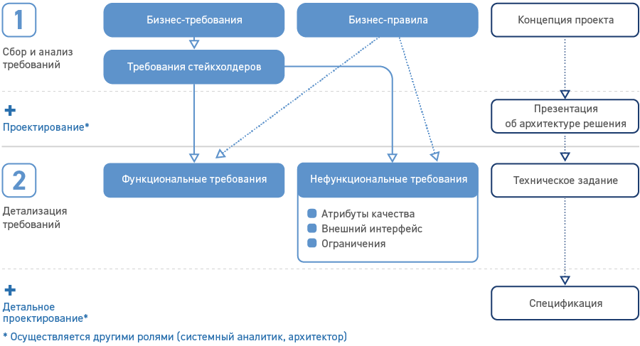 Анализ требований происходит на всех этапах жизненного цикла работы с требованиями и включает в себя понимание требований, моделирование составляющих, а также верификацию и управление изменениями в требованиях.