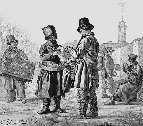 Причем если в столицах еще был какой-то контроль за торговцами, то в провинции все обстояло значительно хуже. Так, современники пишут, что табак привозится нарочно для Сибири под особенными бандеролями, на которых выставляются самые высокие цены, а в Ирбите в одно время была лавка с надписью: «Здесь приготовляются херес и мадера для Сибири»[219]. Практиковались и более опасные для покупателей махинации, вплоть до фальсификации товаров. Так, Ипполит Завалишин отмечал, что оптовые торговцы подмешивали на Ишимской ярмарке в жировой товар известь, муку, даже песок[220]. Фальсифицировались продукты питания, напитки. Современник писал, что в Сибири в продаже «есть даже „собственные“ вина, нигде никогда не слыханные, как, например „фаяльское“, переименованное за вкус и впечатление в „русский мордоворот“, о вкусе которого лучше всего выражался волостной писарь, который, в рюмку водки подливши красного уксуса, попивал да похваливал: „Совсем настоящее фаяльское вино!“[221].