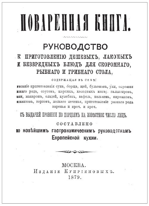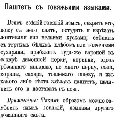 Мы же попытались использовать действительно старинный рецепт, допускающий его воспроизведение из современных продуктов. Каковой и был обнаружен нами в «Руководстве к приготовлению дешевых, лакомых и безвредных блюд для скоромнаго, рыбнаго и грибнаго стола», изданном в Москве в 1879 году.