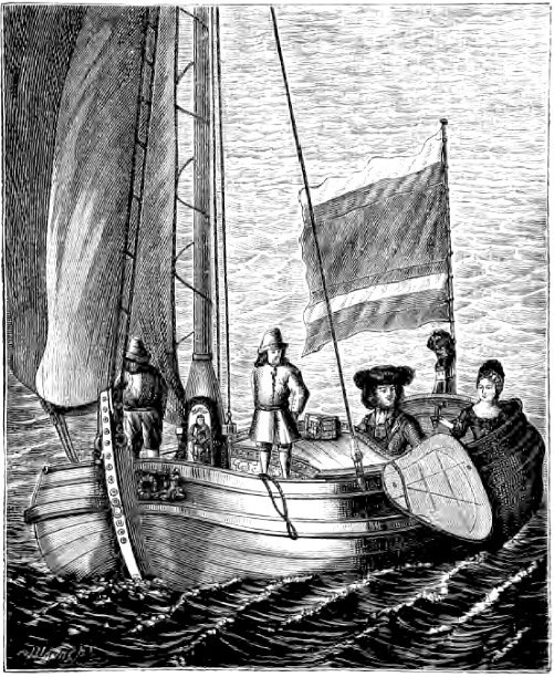 Петр и Екатерина, катающиеся по Неве (с гравюры А. Ф. Зубова, 1716 год)