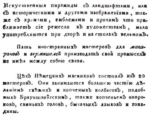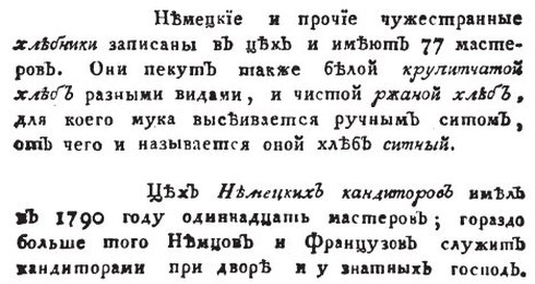 Как видите, назвать это массовым проникновением иностранной кулинарной культуры сложно. Конечно, были еще повара, работавшие в частных домах. Но, согласитесь, для города с населением в 220 тысяч человек (а именно таким оно было в 1800 году) десяток-другой иностранных мастеров – не так уж много.