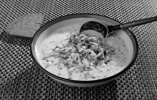 ОкрошкаС ее приготовлением все понятно – мелко нашинкованная зелень (укроп, лук, чуть петрушки) растирается с солью, добавляются мелко накрошенные огурцы, яйца, редис и отварное мясо. Про картошку даже и не заикайтесь – категорически не должно ее быть в этом холодном супе, даже несмотря на то что в рецепте КВЗП она значится! С мясом-то тоже вопросы есть, а уж про колбасу вообще забудьте. Заливается все холодным домашним квасом. Для остроты можно добавить хрена, горчицы и подавать со сметаной. Не будет ошибкой, если вместо кваса вы используете кефир (в этом случае его следует немного развести газированной минеральной водой из холодильника).